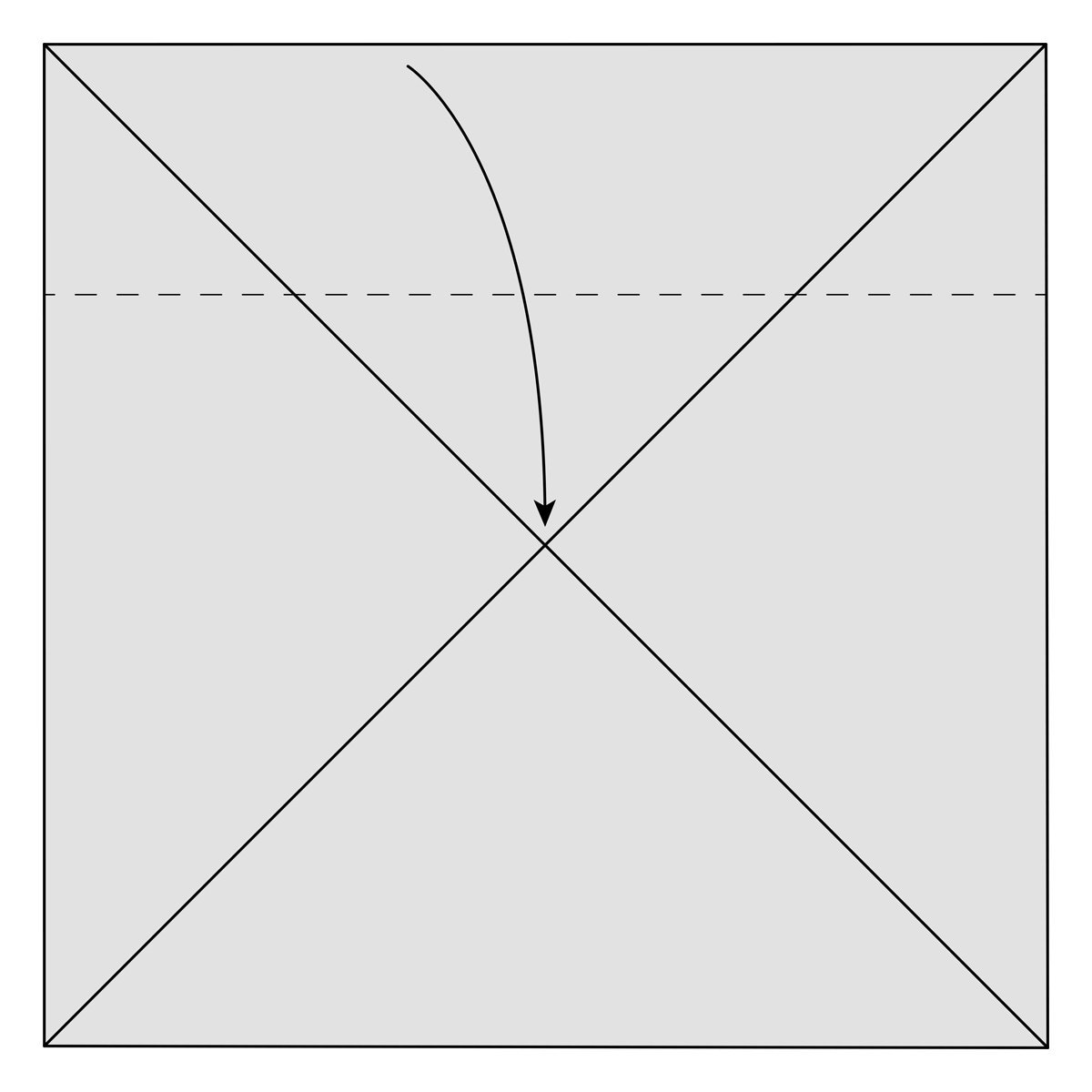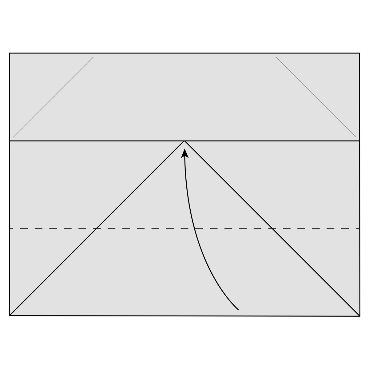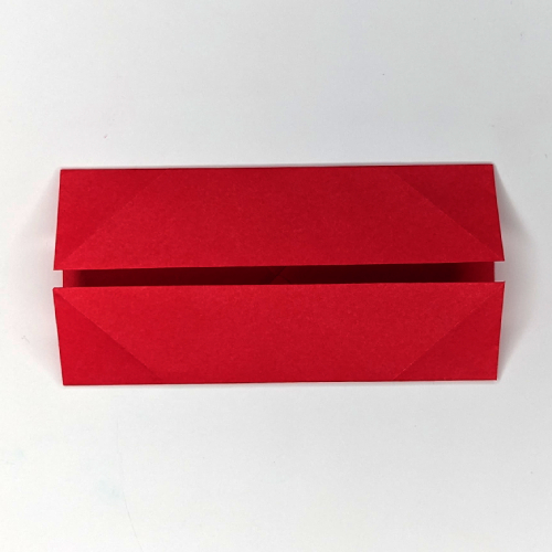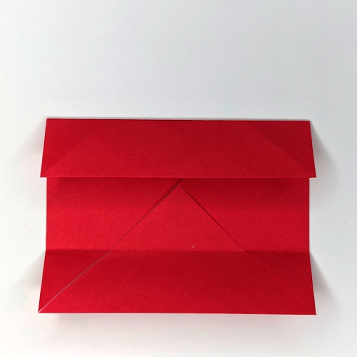 Fold the top flap of paper down along the dotted line to form the edge of the box. Fold the top triangle of paper up a little bit to also fit into the bottom of the box, just like in step 19.