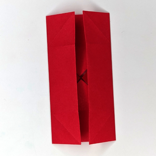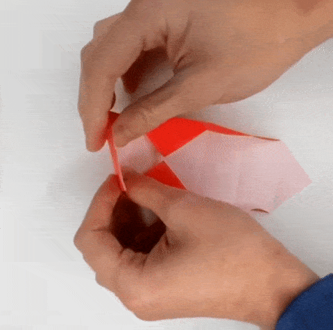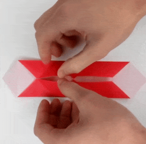 With your middle fingers, grab the back of the paper and pull out your index fingers. Pinch in the sides between your thumbs and middle fingers.