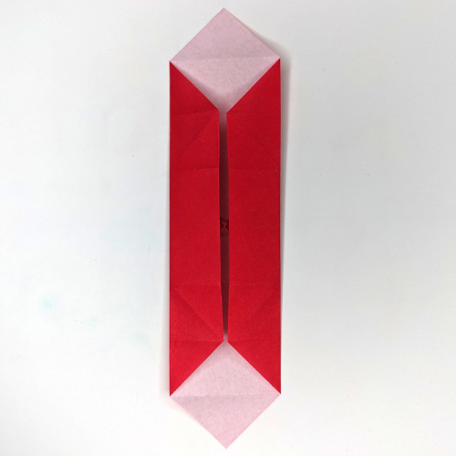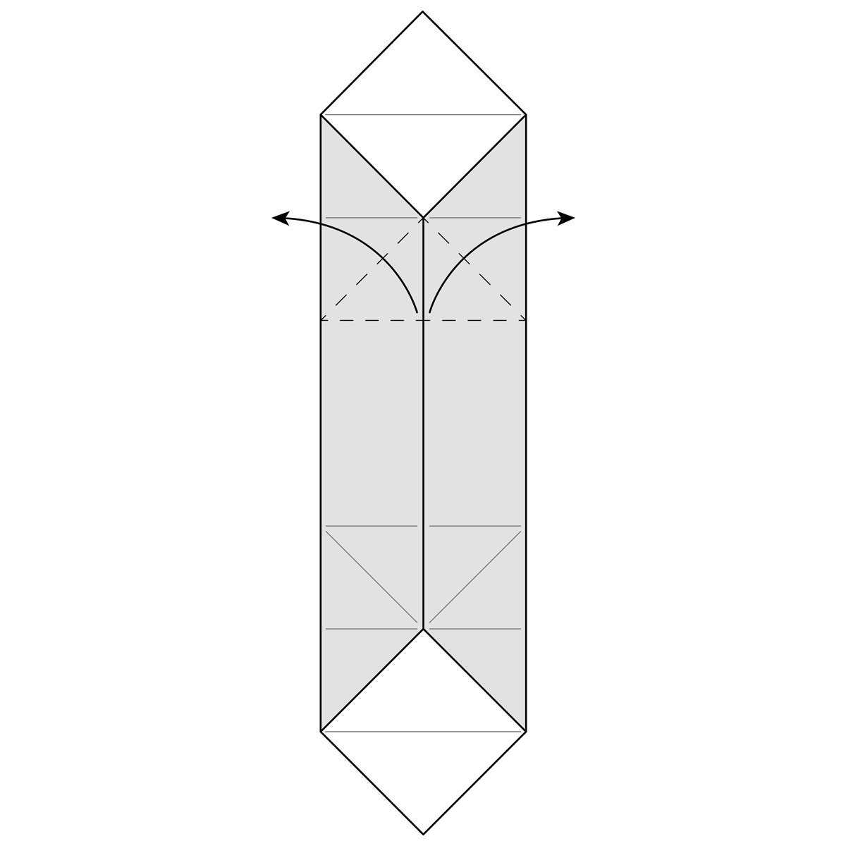 Push your index fingernails into the diagonal ‘valley’ creases near the top.