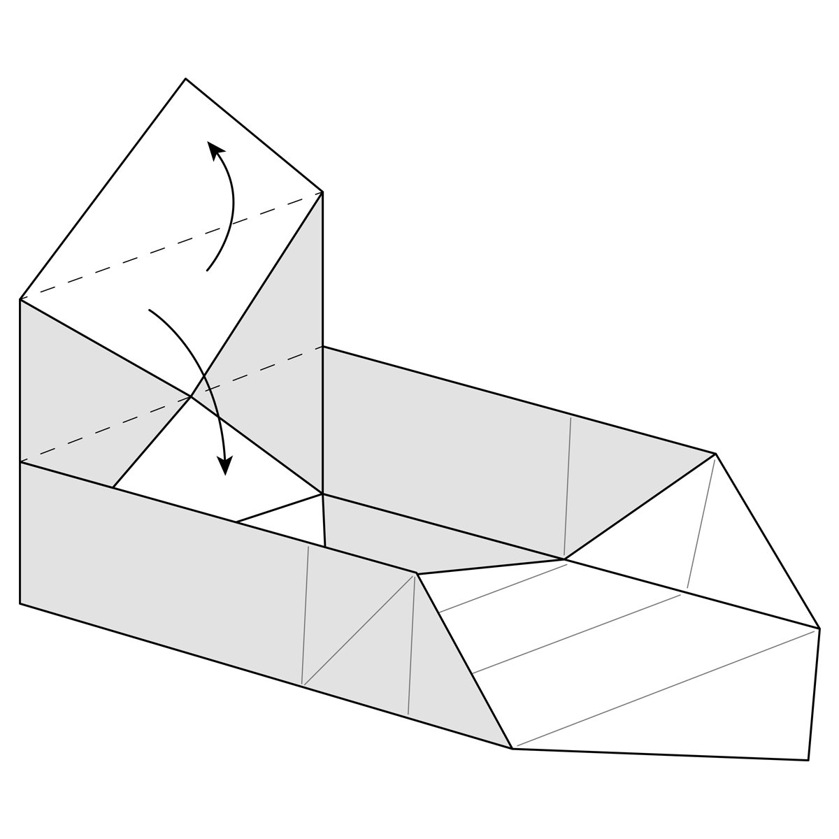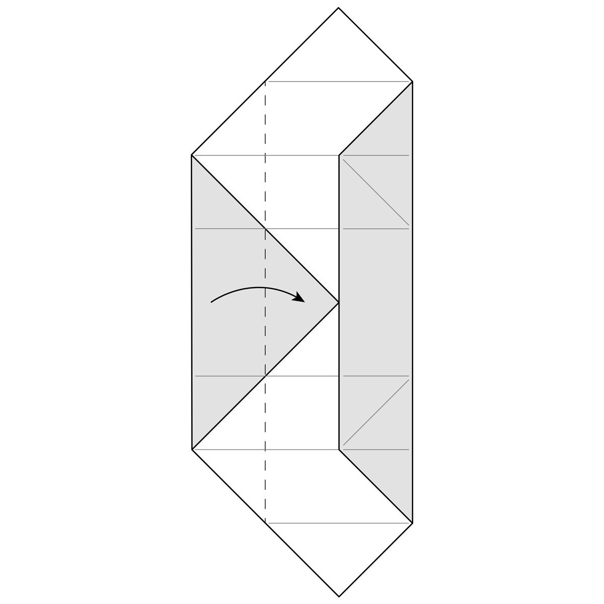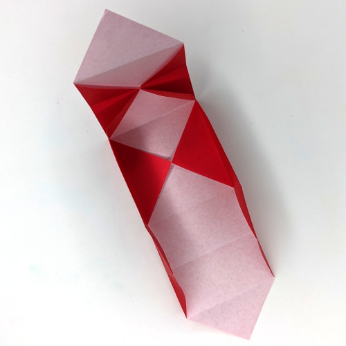 Fold the other side of the box now along the existing creases as you did in steps 17 and 18. The paper should fall into place and give you a shape, just like in step 18.