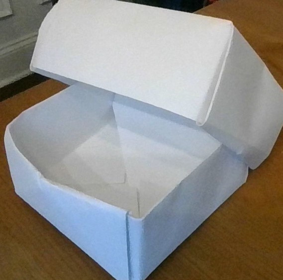 If you want to fold a lid for your box, you have a couple of options. First, you can simply use slightly larger paper and fold the lid exactly the same way you did the box itself.