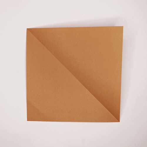 Fold the top flap’s top corner to the left along the dotted line to form one of the origami fox’s ears.
