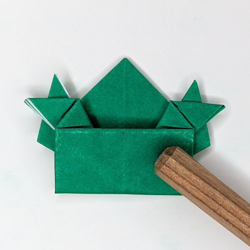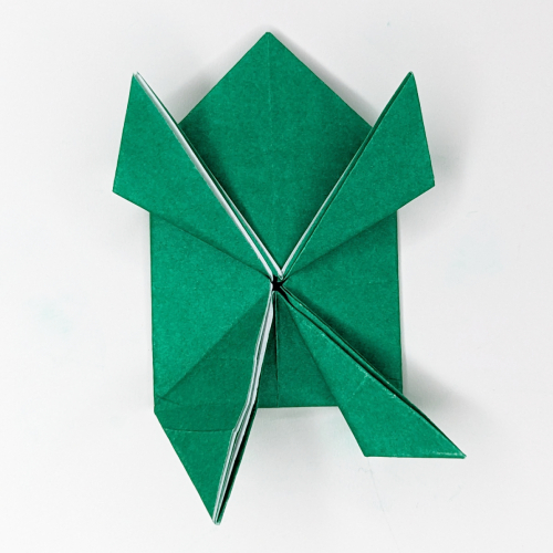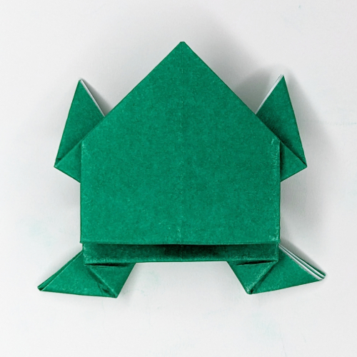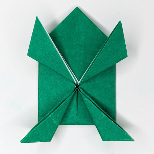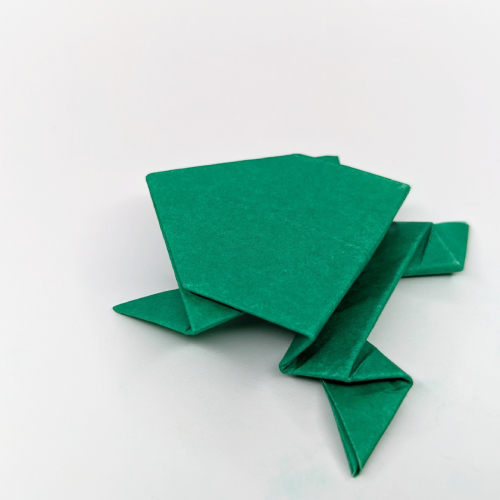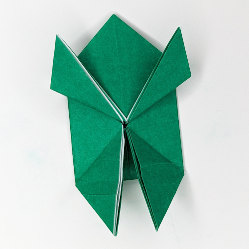 When you fold this model, the paper will get pretty thick near the end. Don’t worry if your folds aren’t completely perfect. The frog will still look good in the end, and it’ll still jump.