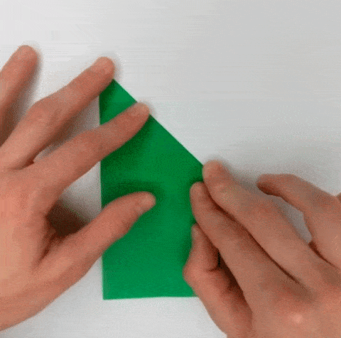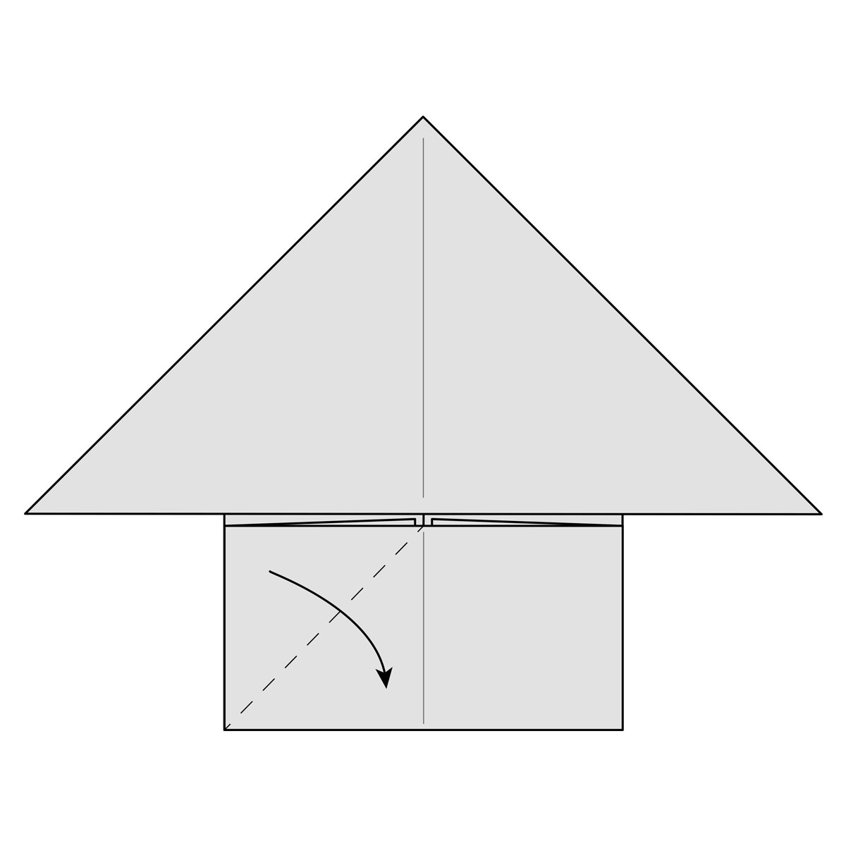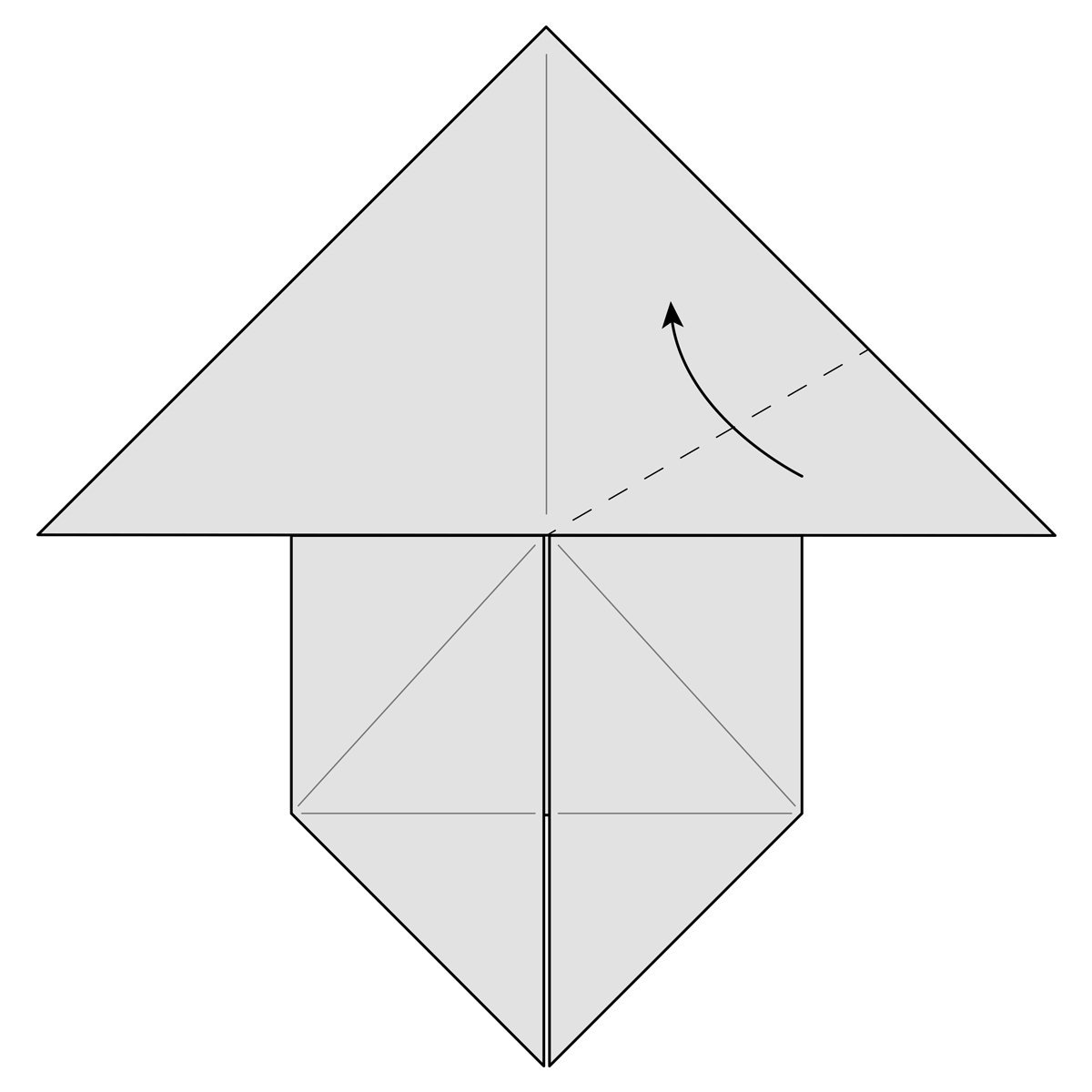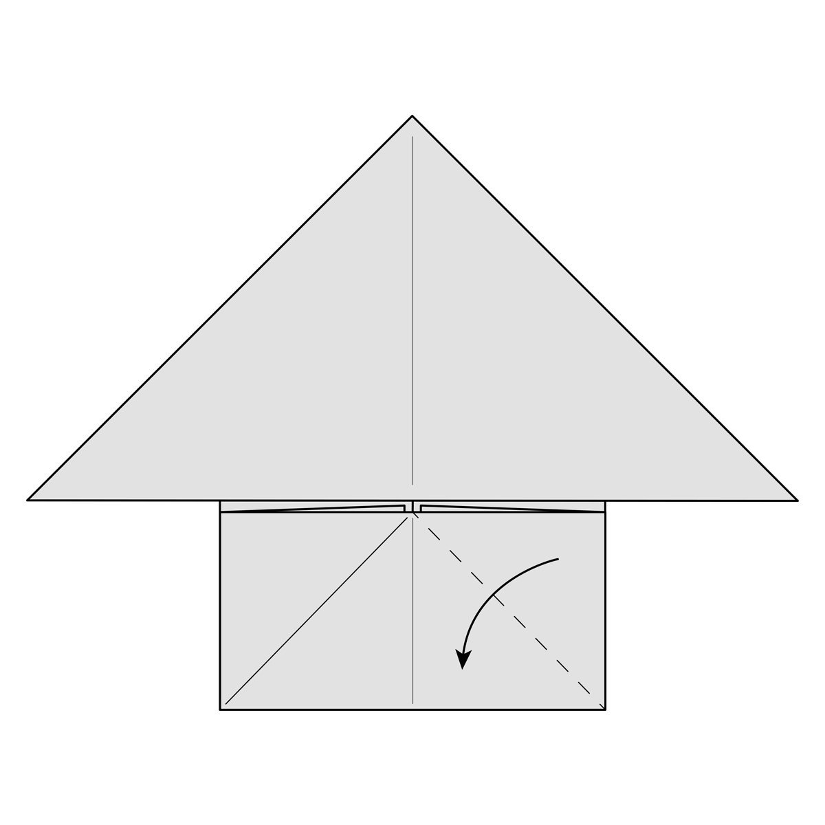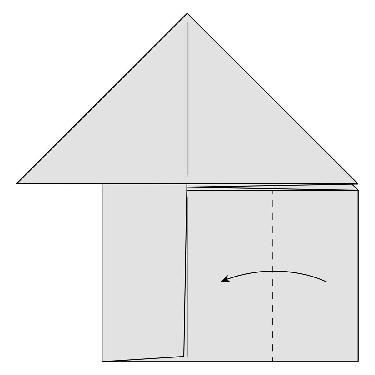 Fold the right side of the paper towards the center along the dotted line. Again, don’t fold the top triangle, but tuck the paper in behind it.