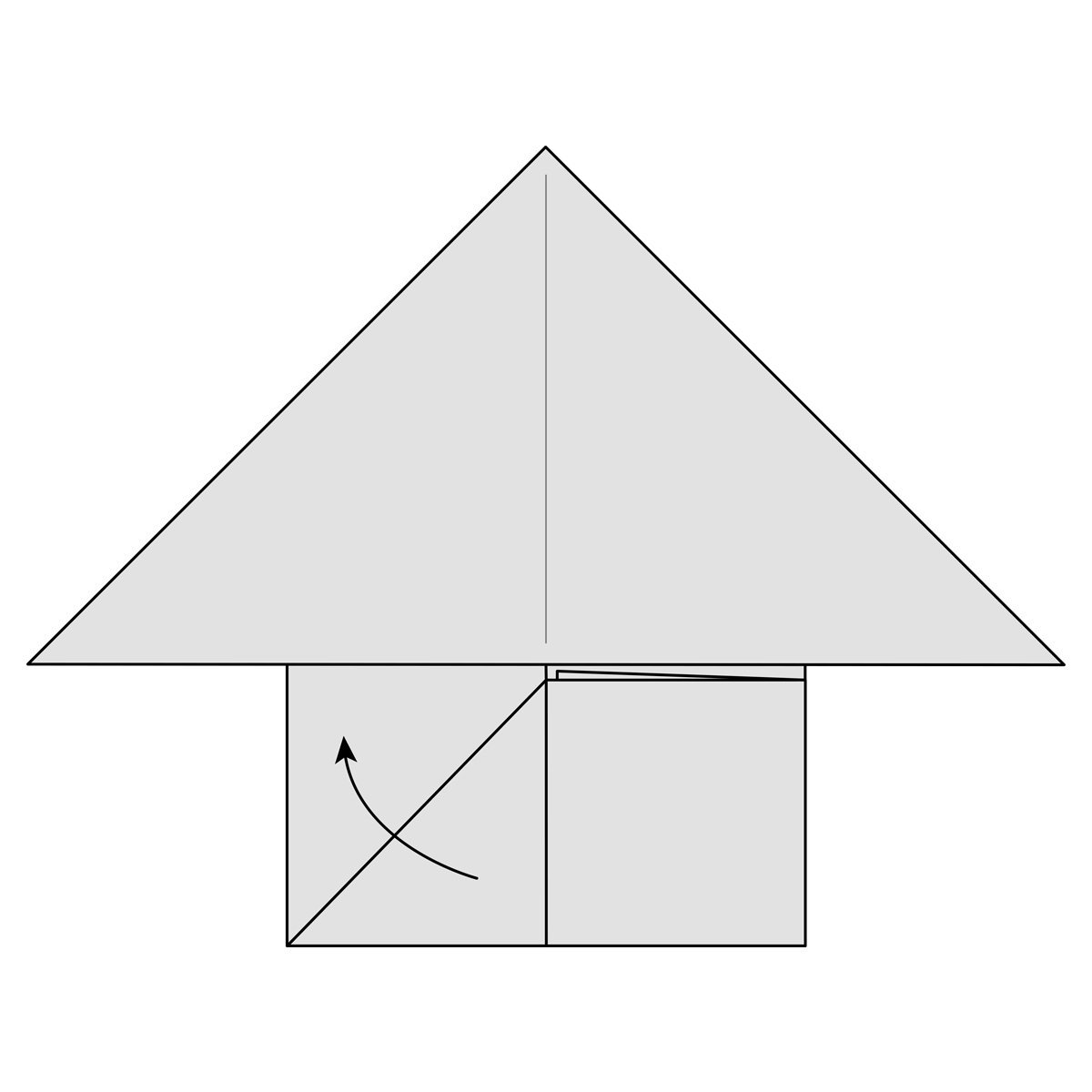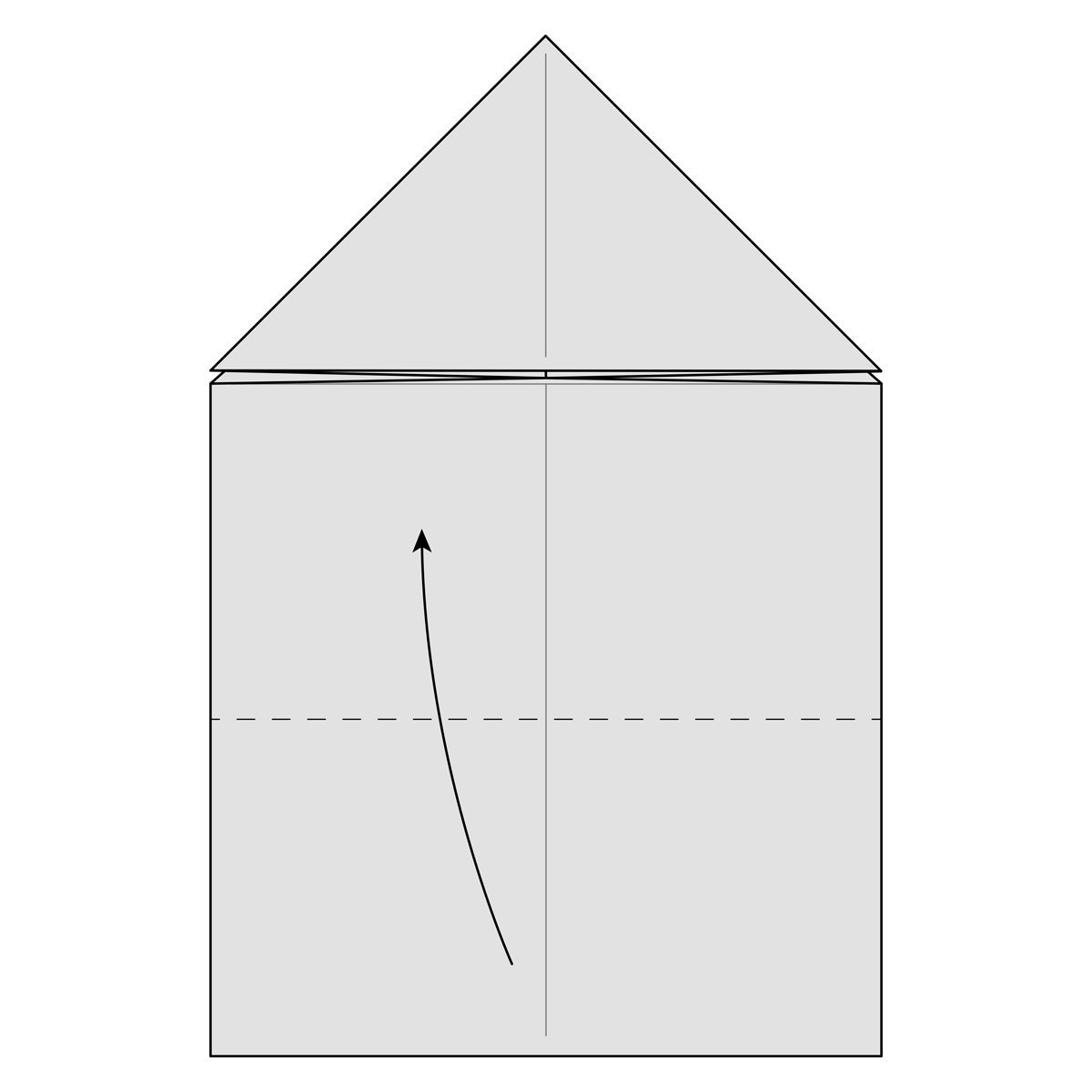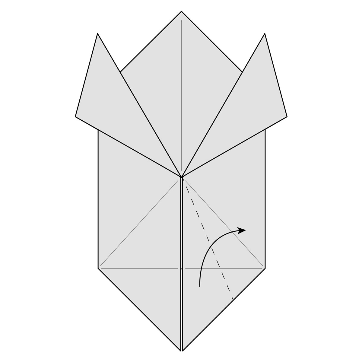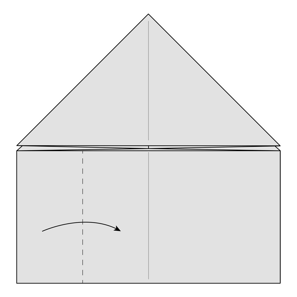 Fold the right side of the paper towards the center along the dotted line. Again, don’t fold the top triangle, but tuck the paper in behind it.