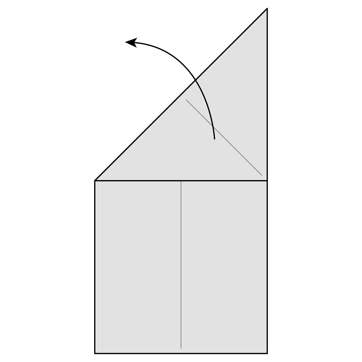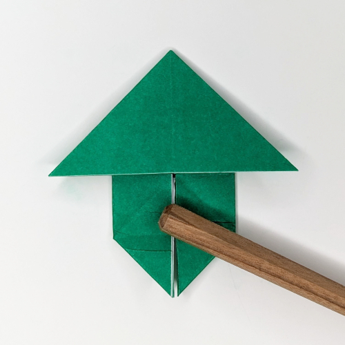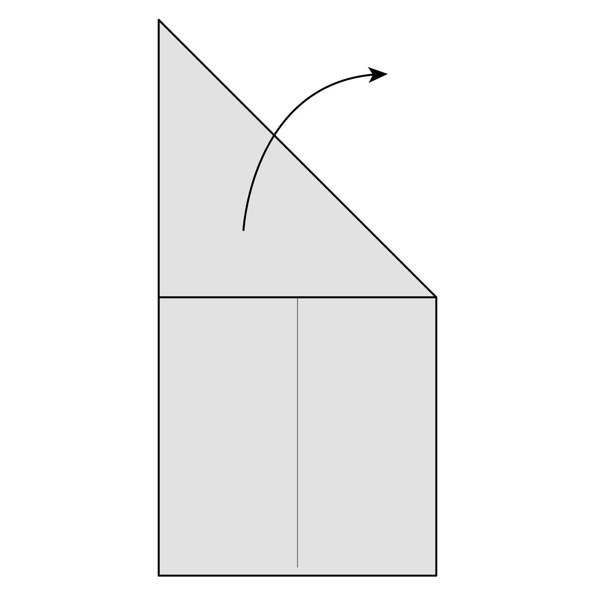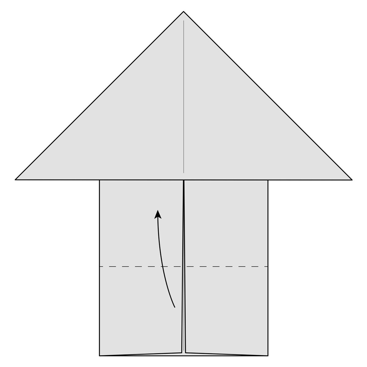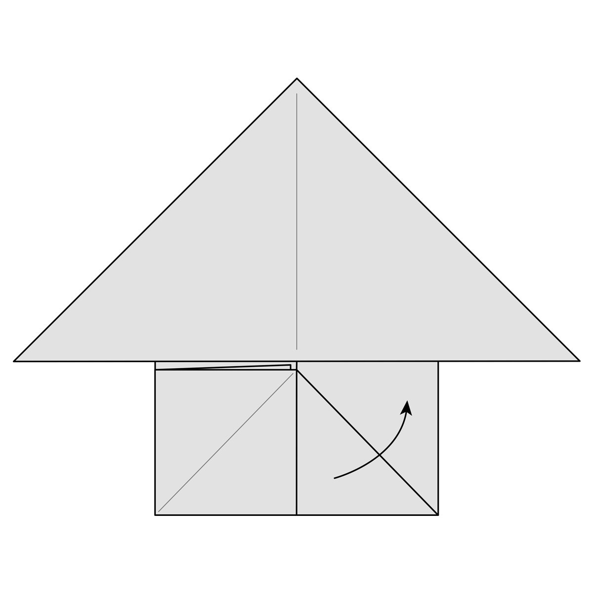 Fold the right side of the paper towards the center along the dotted line. Again, don’t fold the top triangle, but tuck the paper in behind it.
