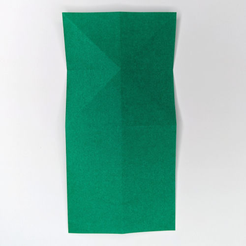 Fold the paper in half vertically again and then unfold it. You’ll use this crease as a guide in later steps.