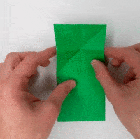 Fold the paper down along the existing creases just like you’re making a Water Bomb Base. Push everything down flat.