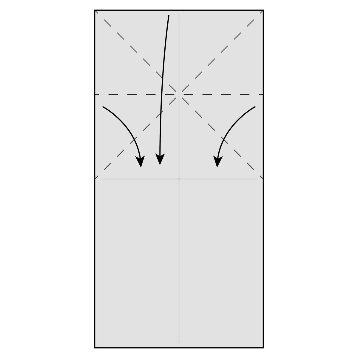 Do the same on the other side: Fold the paper down along the dotted line. Crease this fold well and then unfold it.