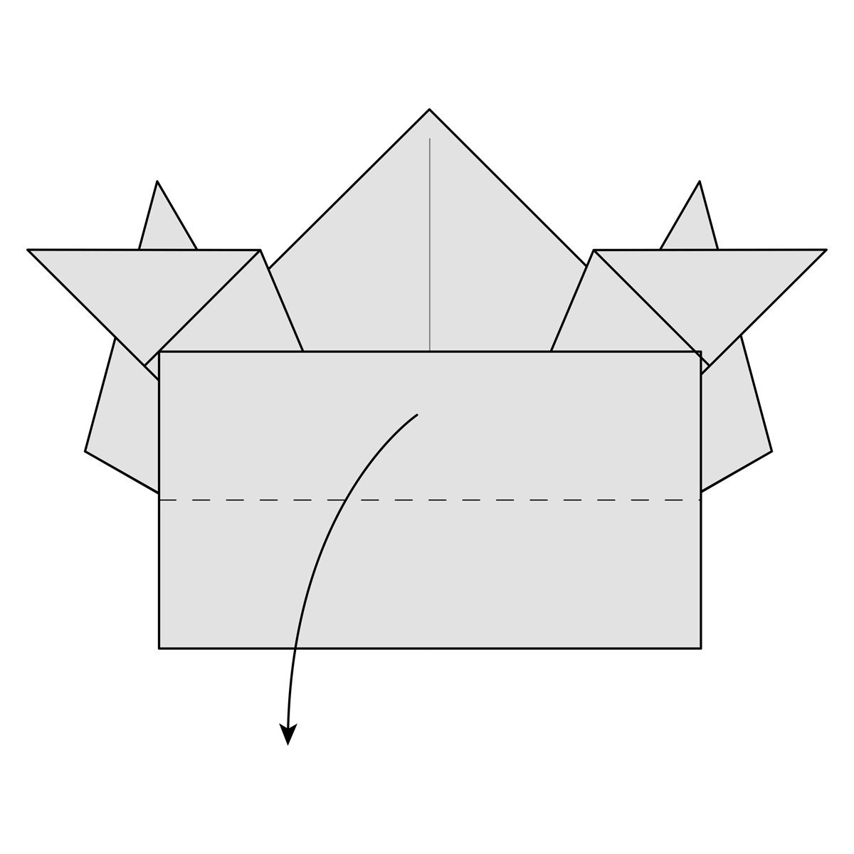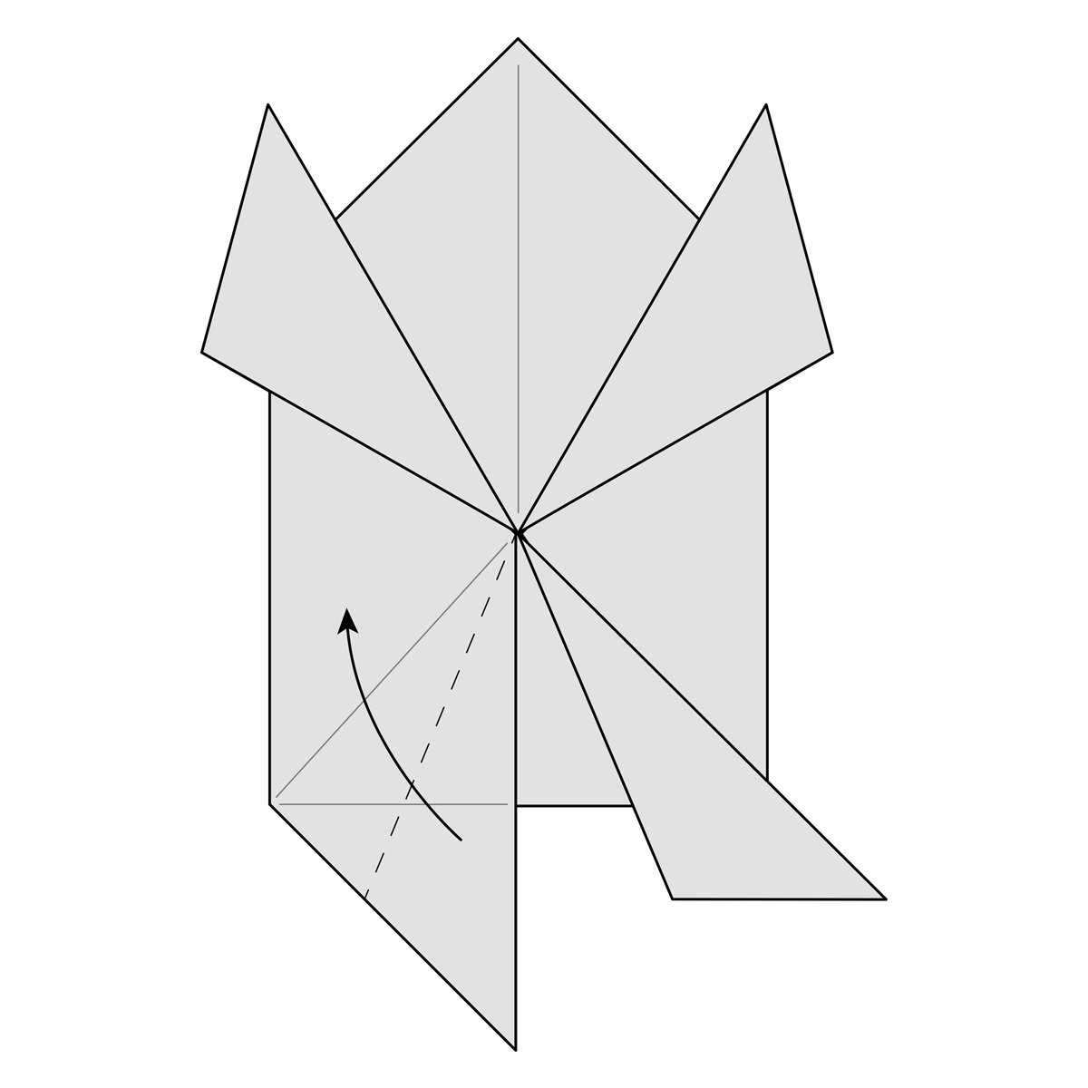 Fold the bottom left part of the paper up along the dotted line to form the other back leg.