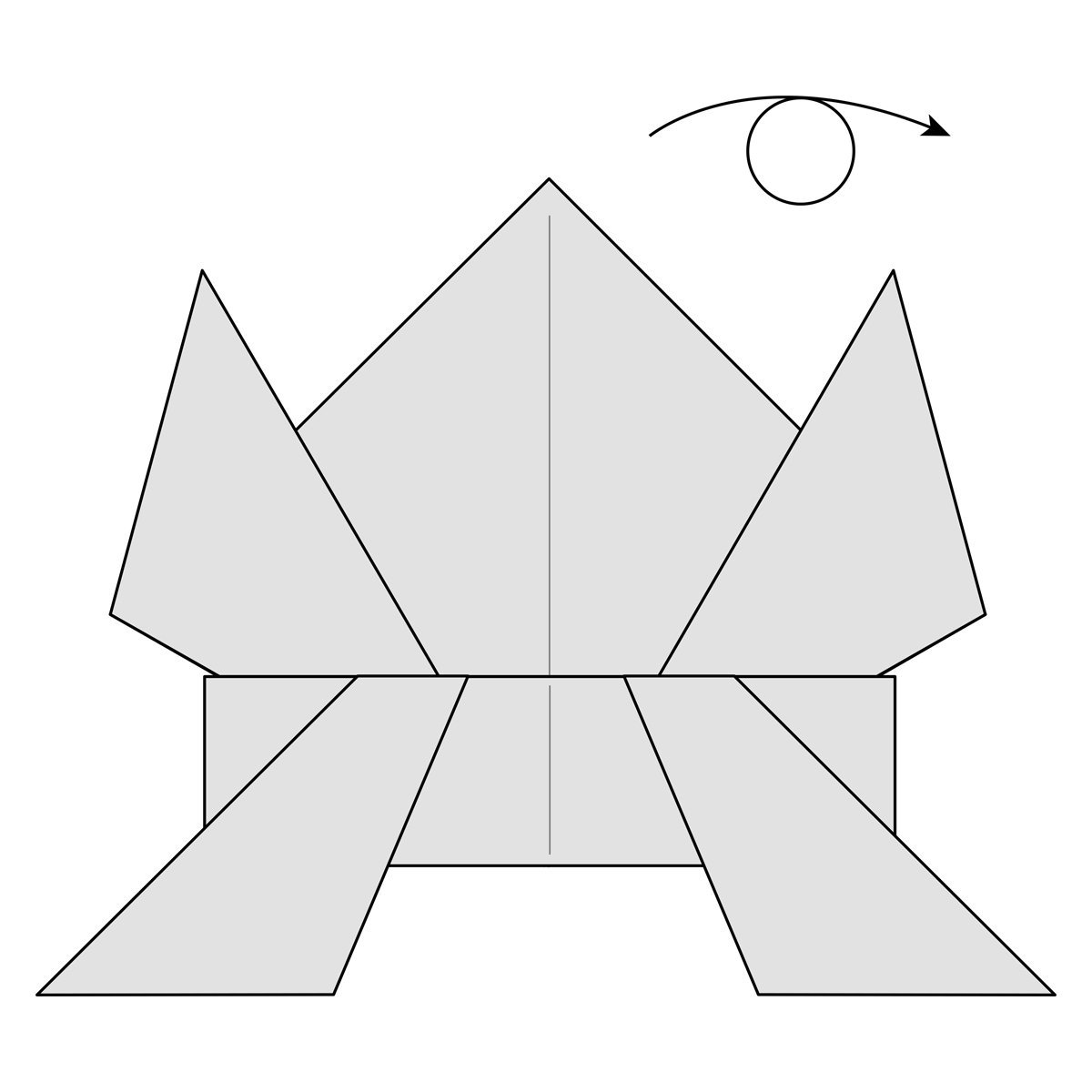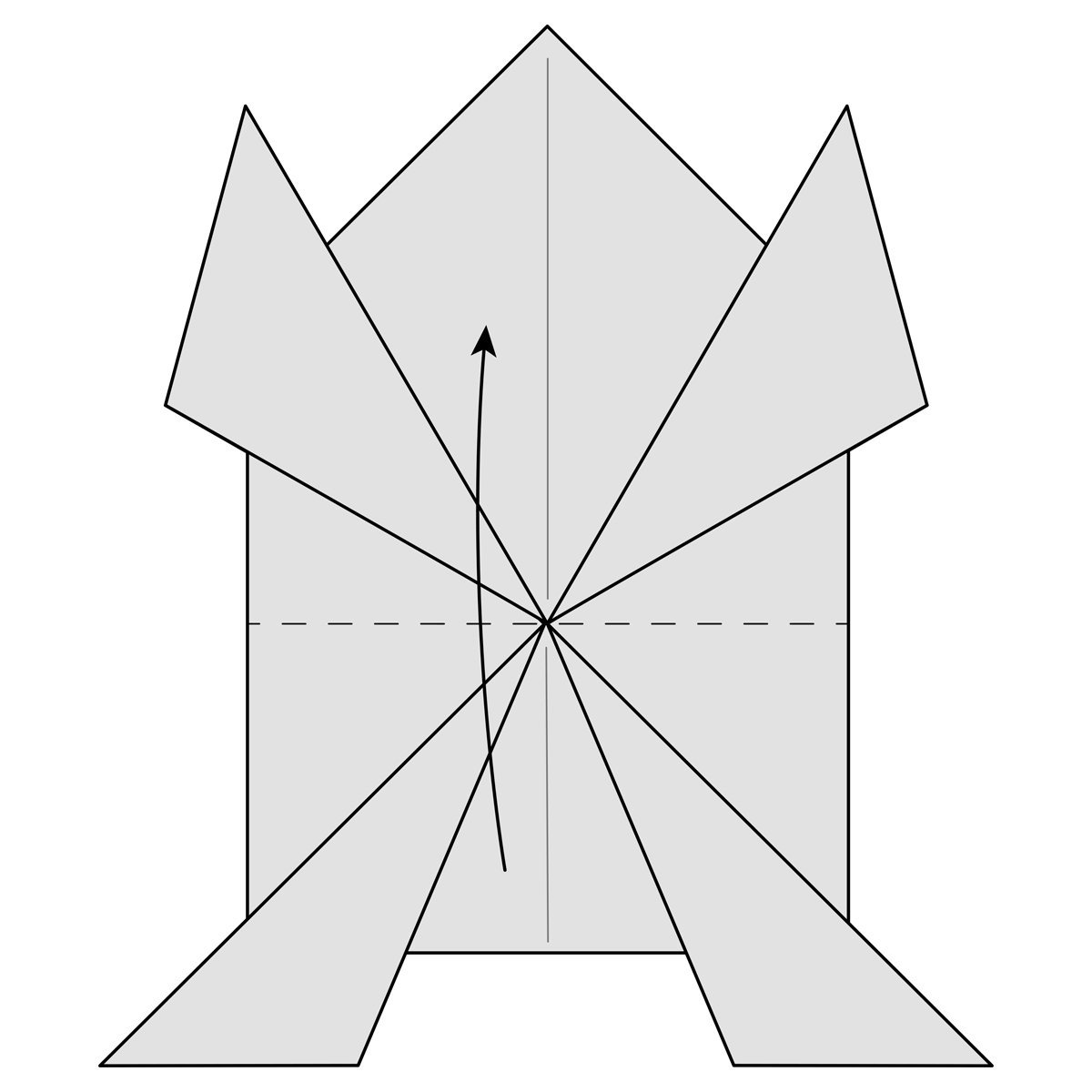 Fold the top right part of the paper up along the dotted line. This will make one of the frog’s front legs. Don’t worry about the angle of the crease. As long as you get a shape like what you see in the next step, it’s fine.