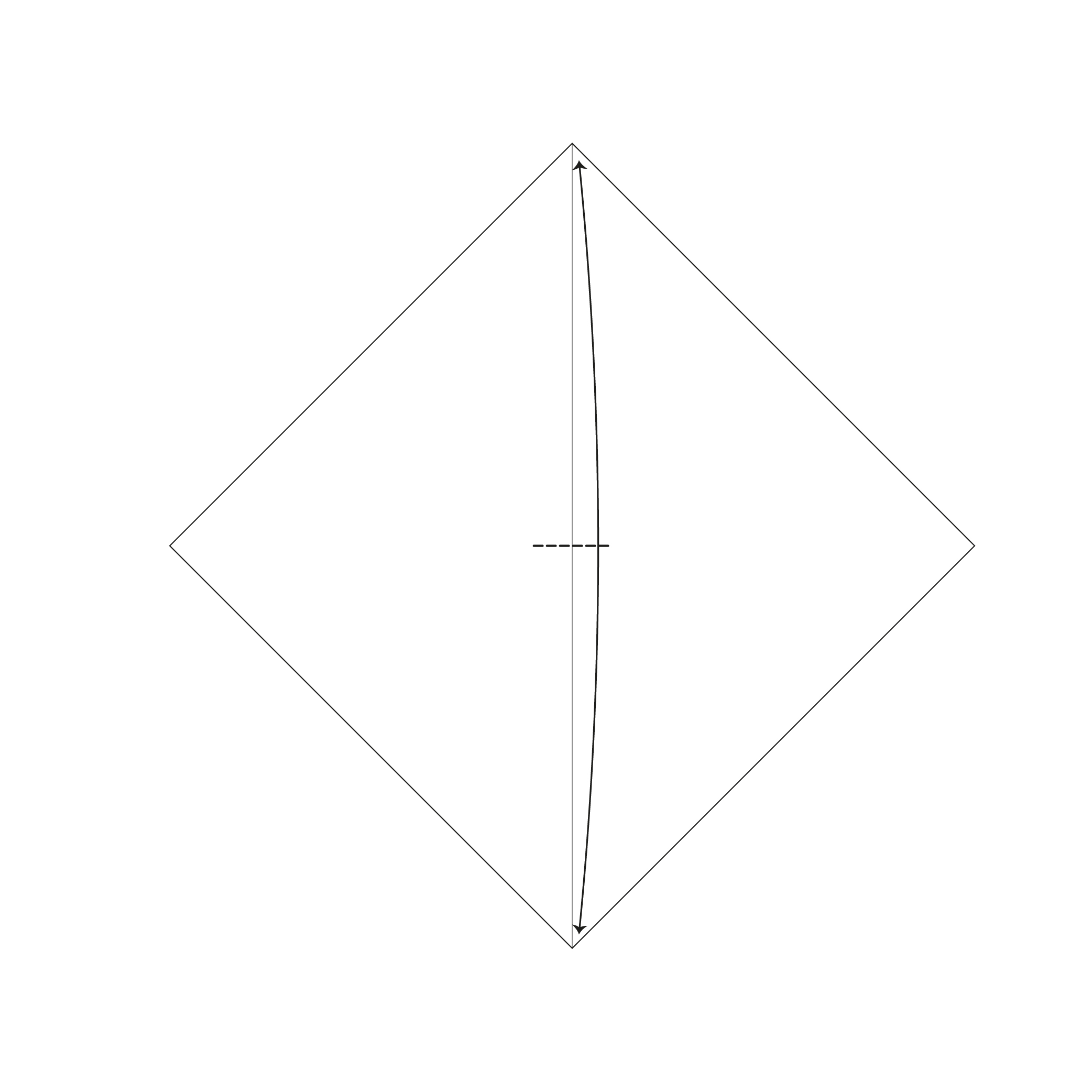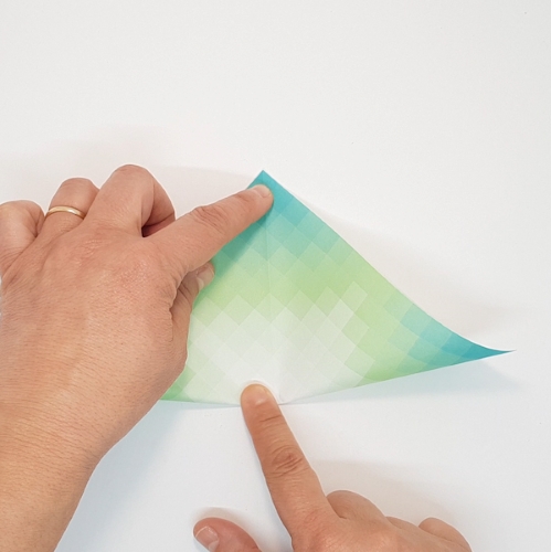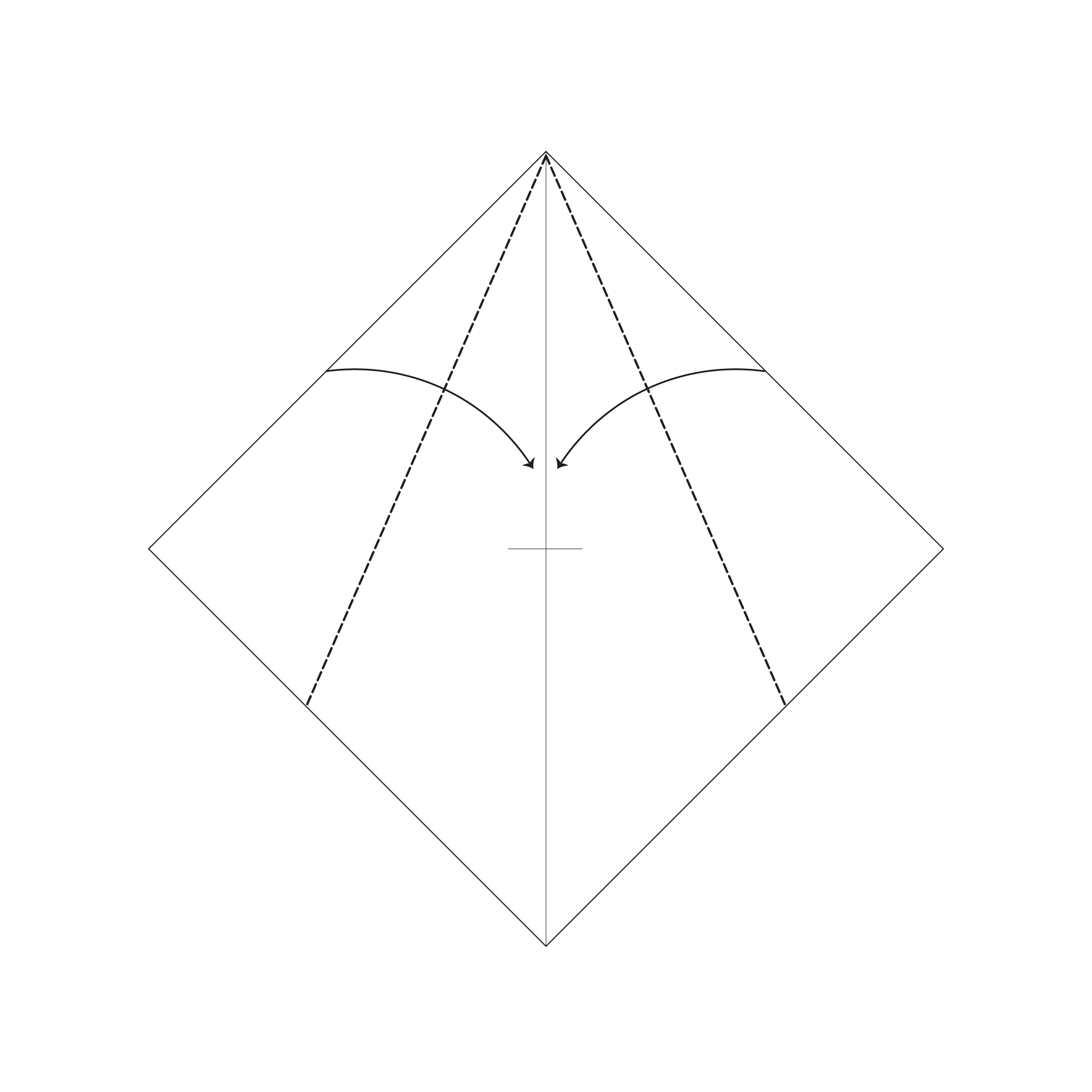 Bring the bottom corner up and align it with the top corner. Mark a pinch along the dotted line and unfold.
