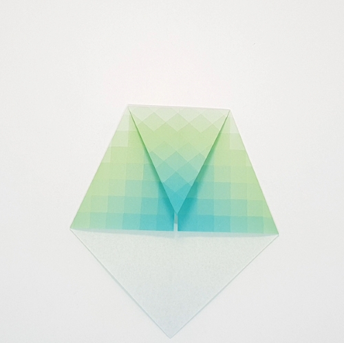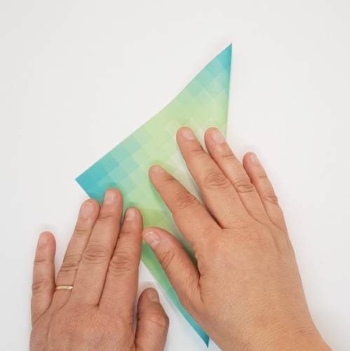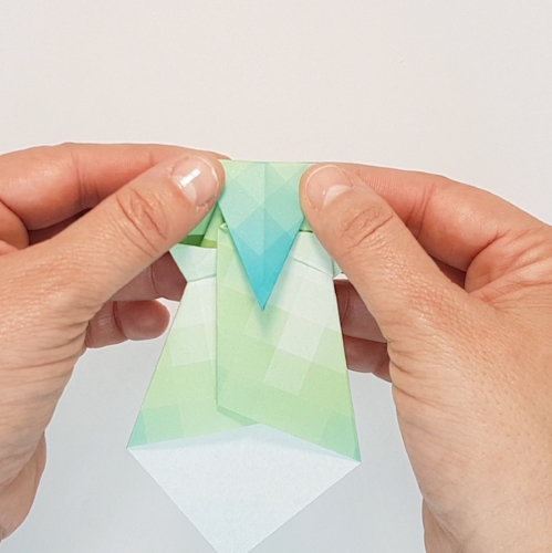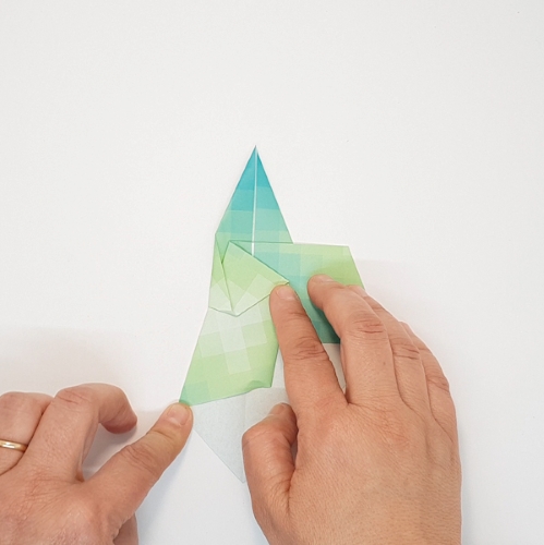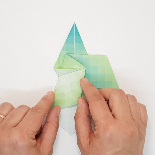 Squash fold as shown on the diagram. We’re going to create two new folds. You can watch the video in Step 8 if you’re unsure about this step.