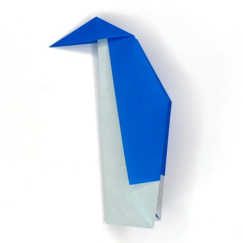 Great work! Your paper penguin is complete, standing proudly with its sleek shape and charming character.